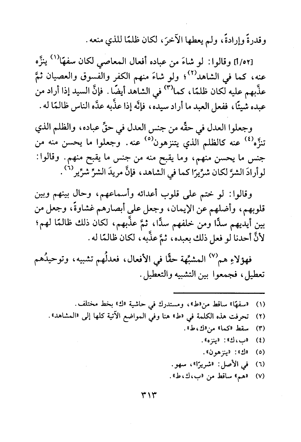 [52/ا] وقالوا: لو شاء من عباده أفعال المعاصي لكان سفها (1) يتزه