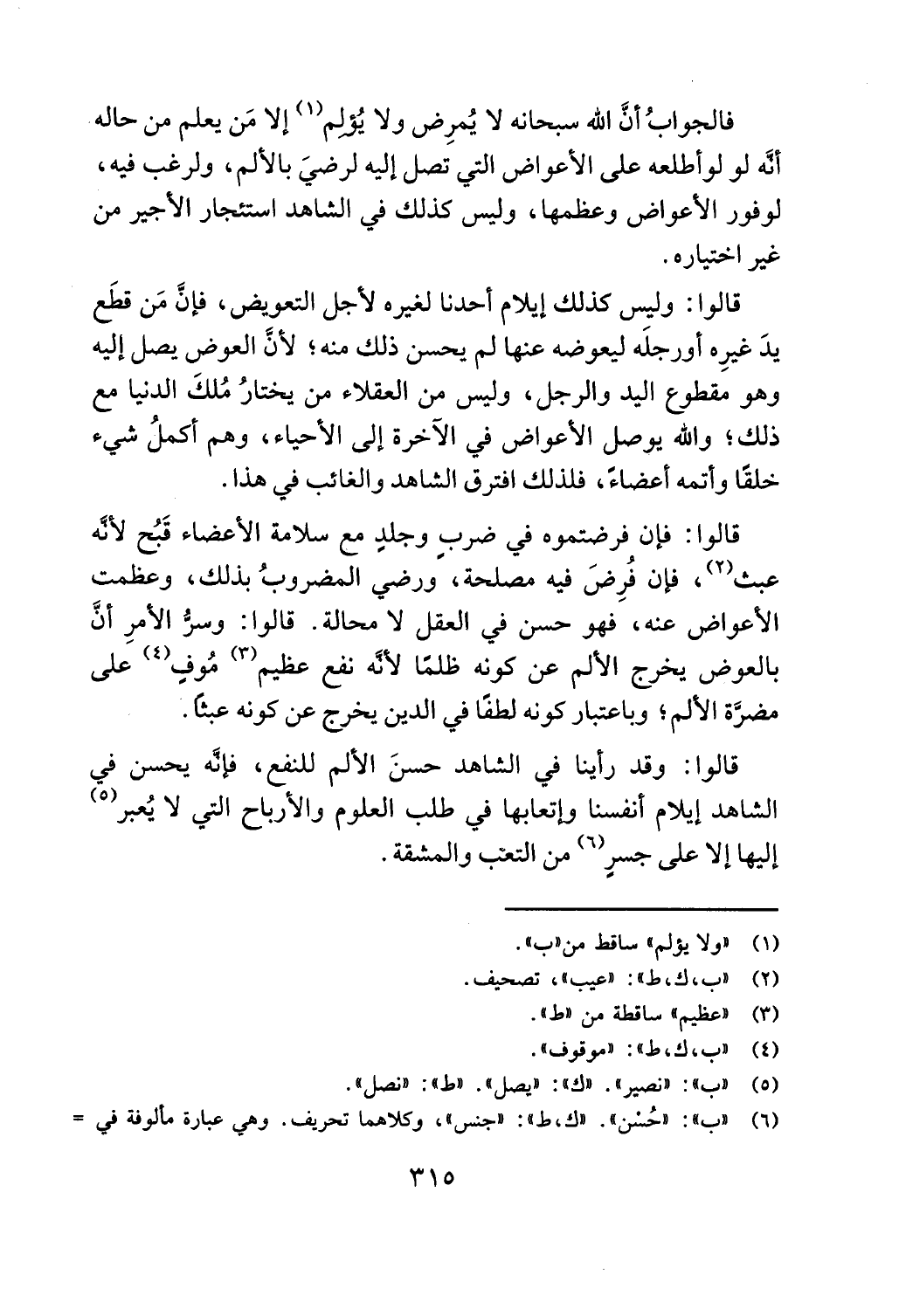 بالعوض يخرج الالم عن كونه ظلما لاله نفع عظيم (3) موف (4) على