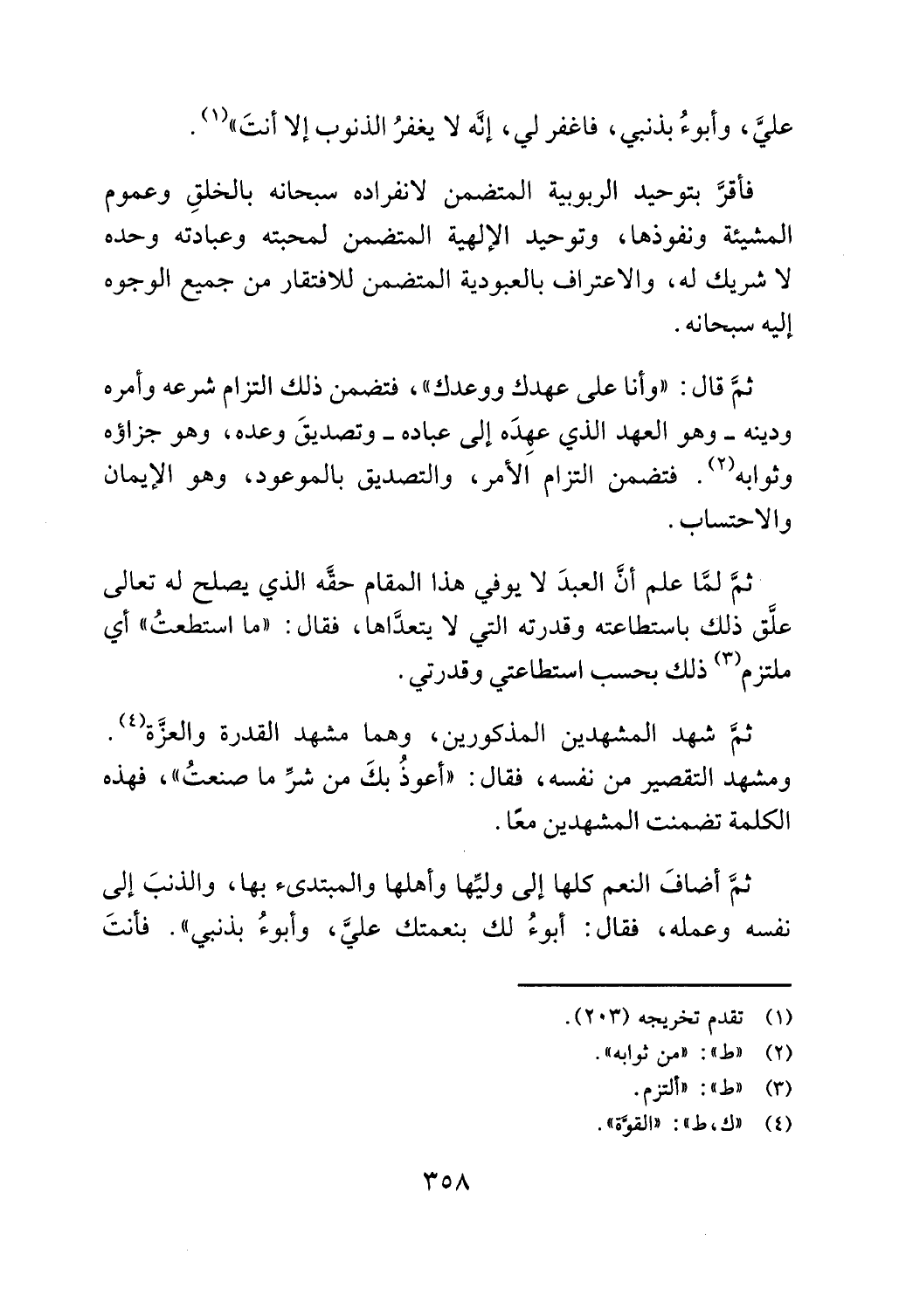 علي، و بوء بذنبي، فاغفر لي، إله لا يغفر الذنوب إلا أنت " (1).