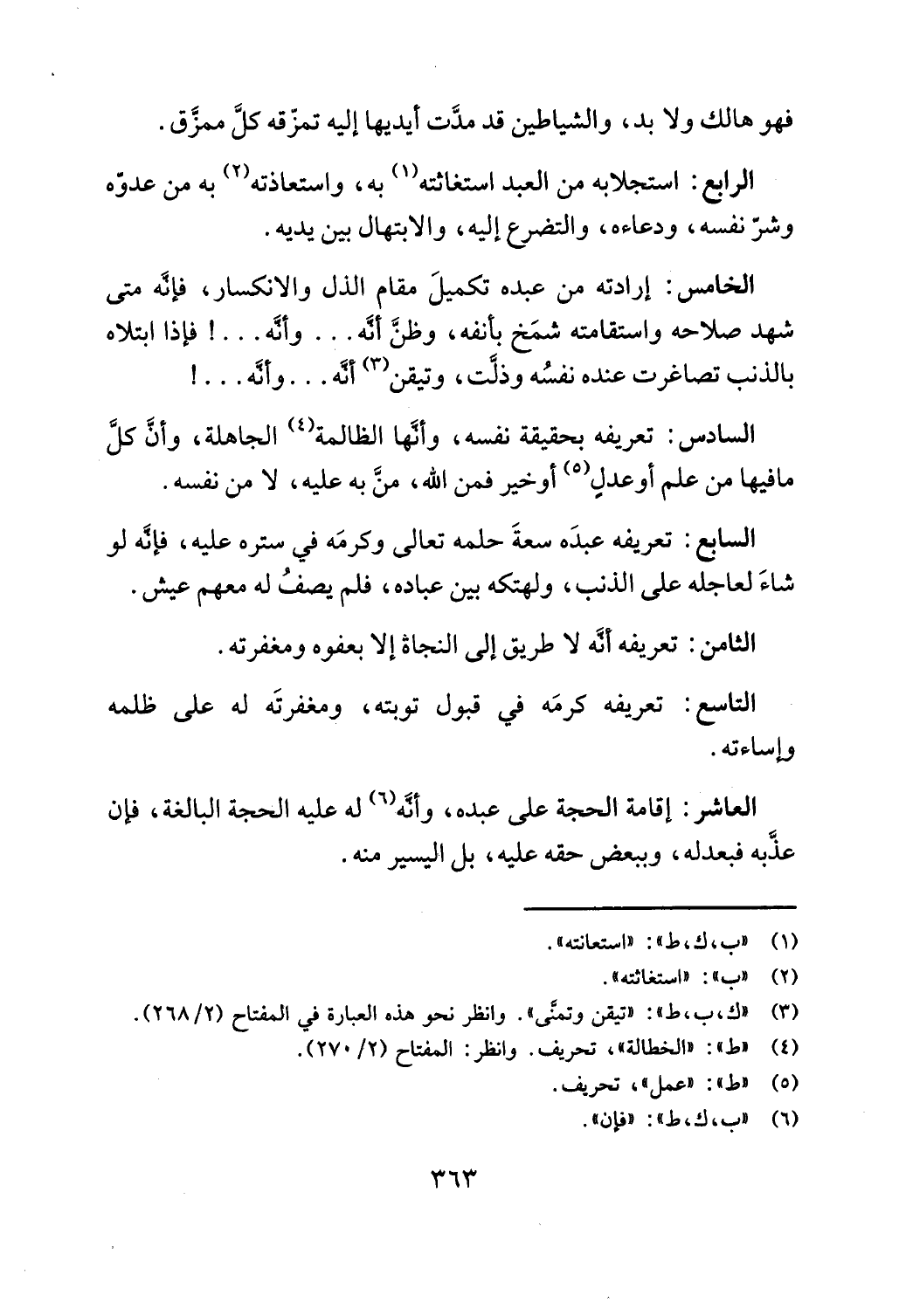 الرابع: استجلابه من العبد استغاثته (1) به، واستعاذته (2) به من عدوه