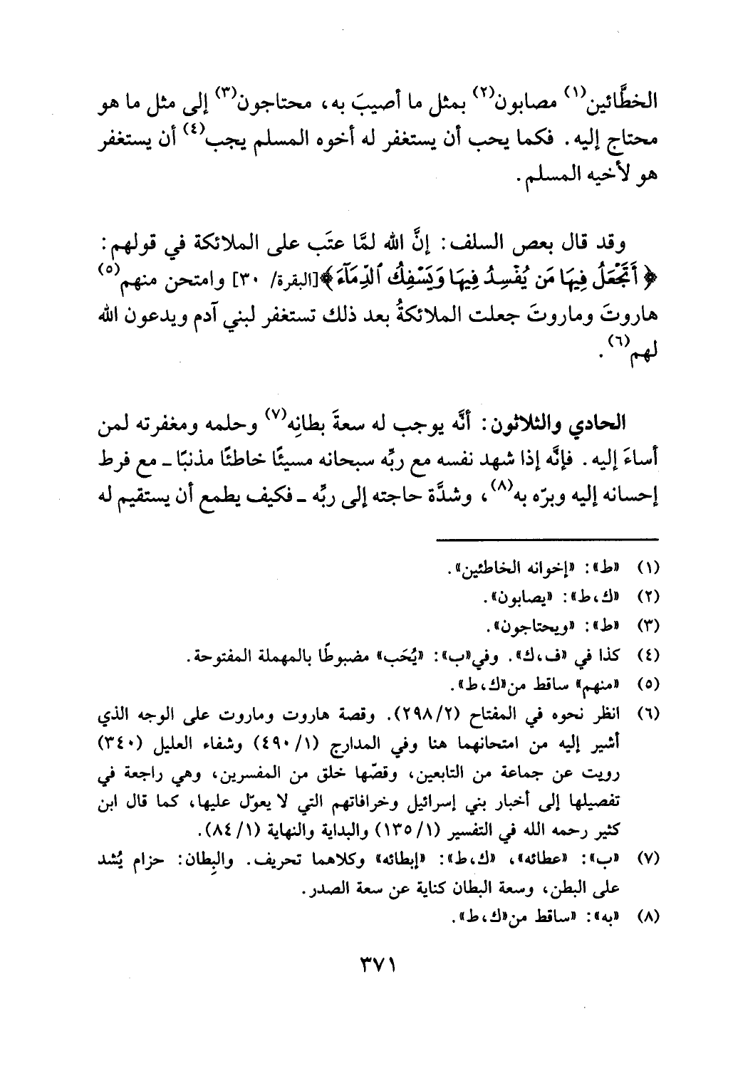 انظر نحوه في المفتاح (298/ 2). وقصة هاروت وماروت على الوجه الذي