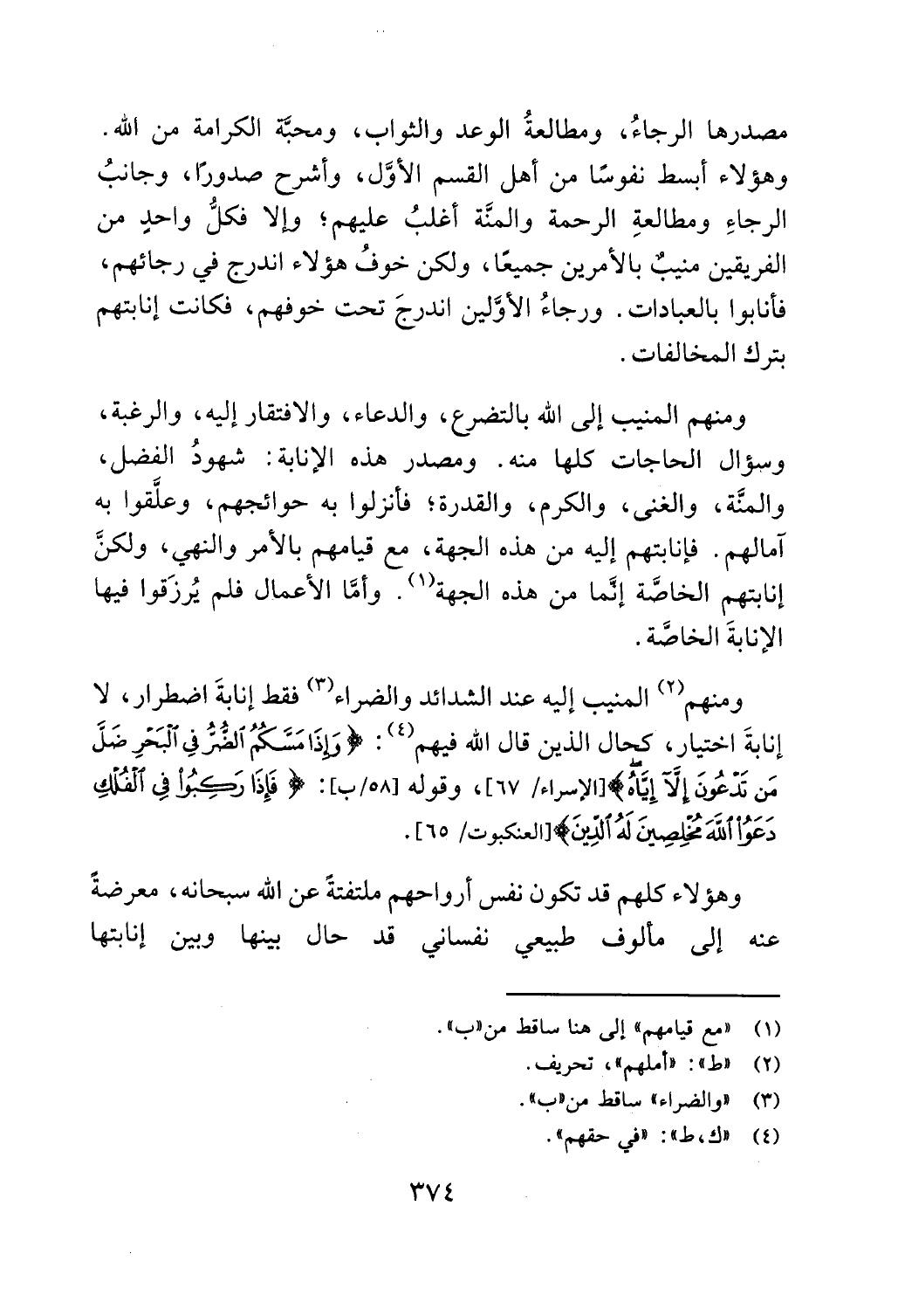 ومنهم المنيب إلى الله بالتضرع، والدعاء، والافتقار إليه، والرغبة،
