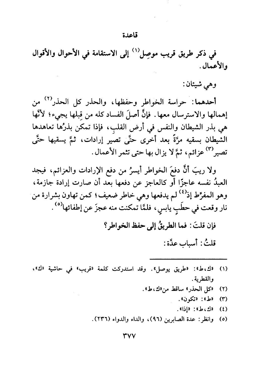 فان قلت: فما 1 لطريق إلى حفظ الخواطر؟