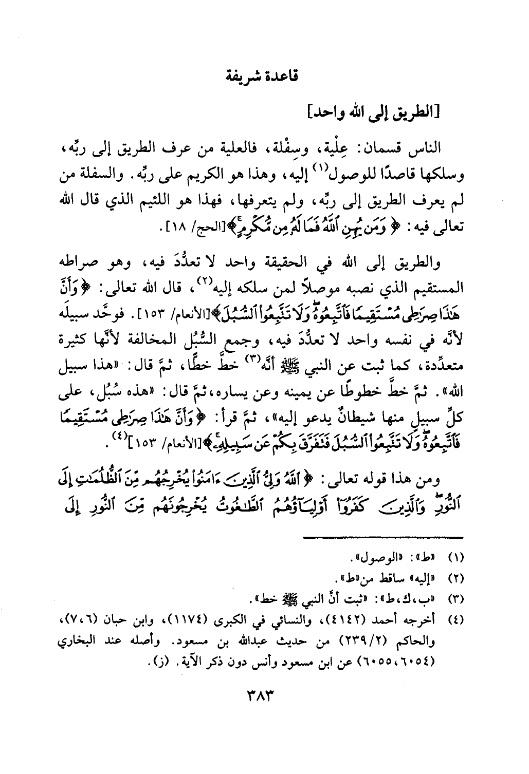 والطريق إلى الله في الحقيقة واحد لاتعدد فيه، وهو صراطه