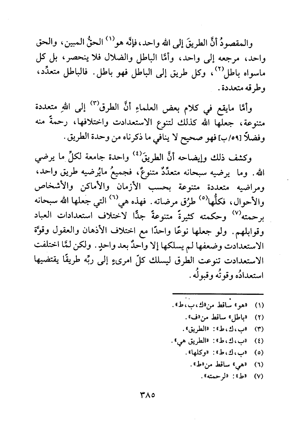 وأما مايقع في كلام بعض العلماء أن الطرق (3) إلى الله متعددة