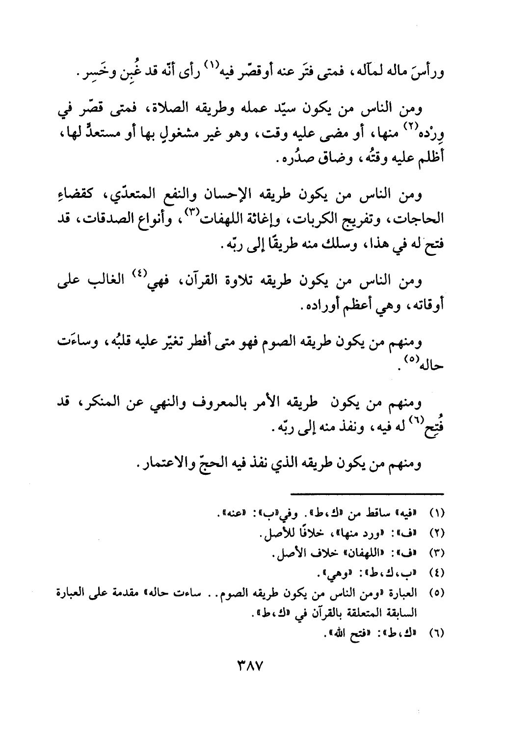 (5) العبارة "ومن الناس من يكون طريقه 1 لصوم. . ساءت حاله " مقدمة على العبارة