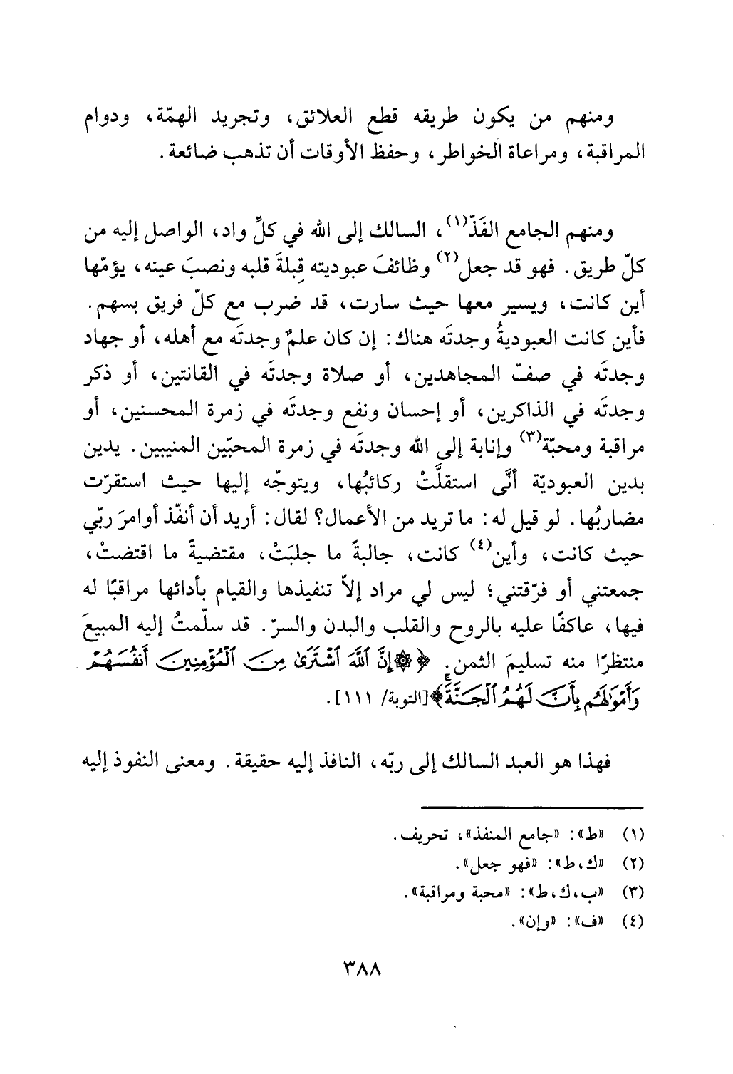 كل طريق. فهو قد جعل (2) وظائف عبوديته قبلة قلبه ونصب عينه، يؤمها