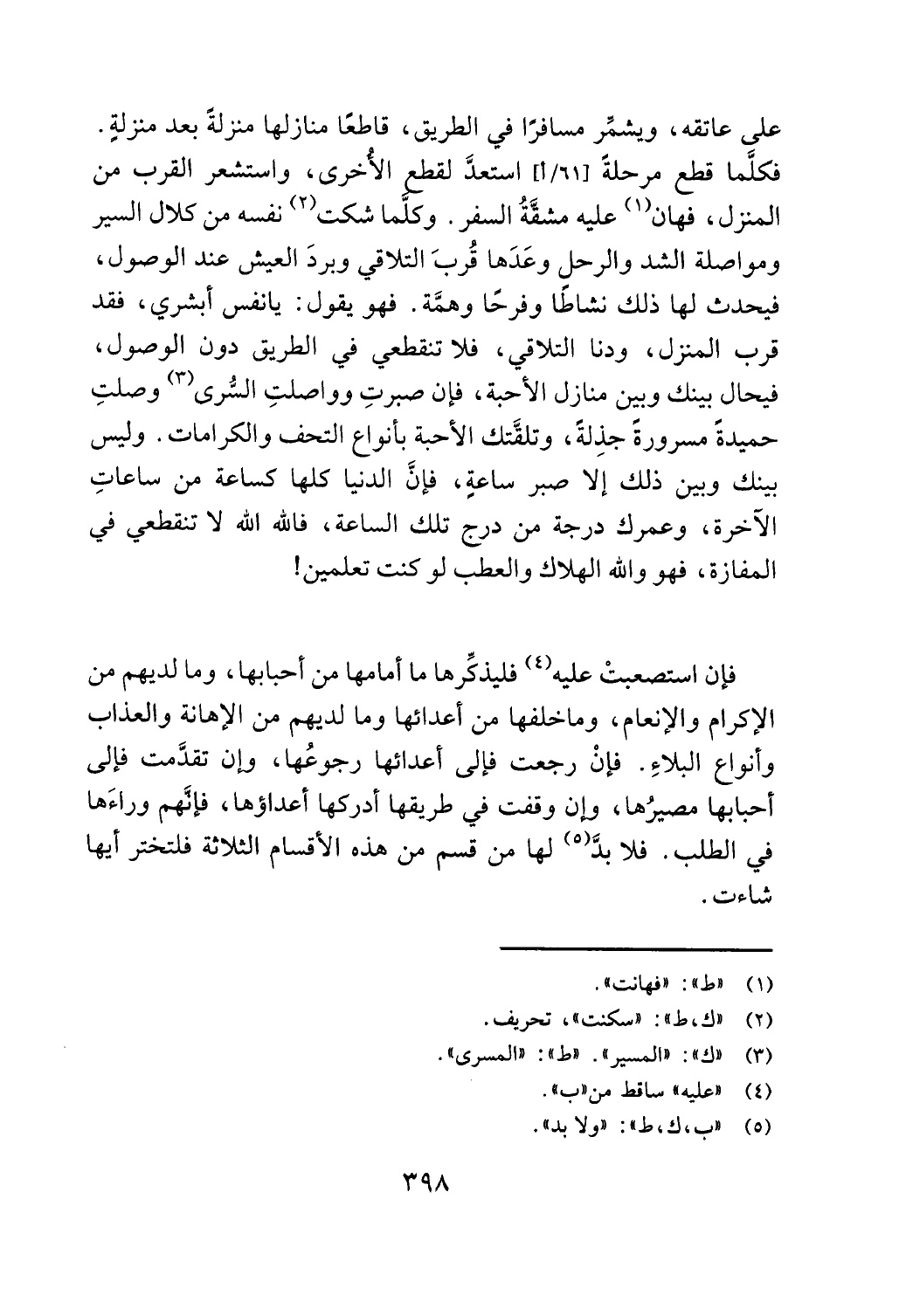 المنزل، فهان (1) عليه مشقة السفر. وكلما شكت (2) نفسه من كلال السير