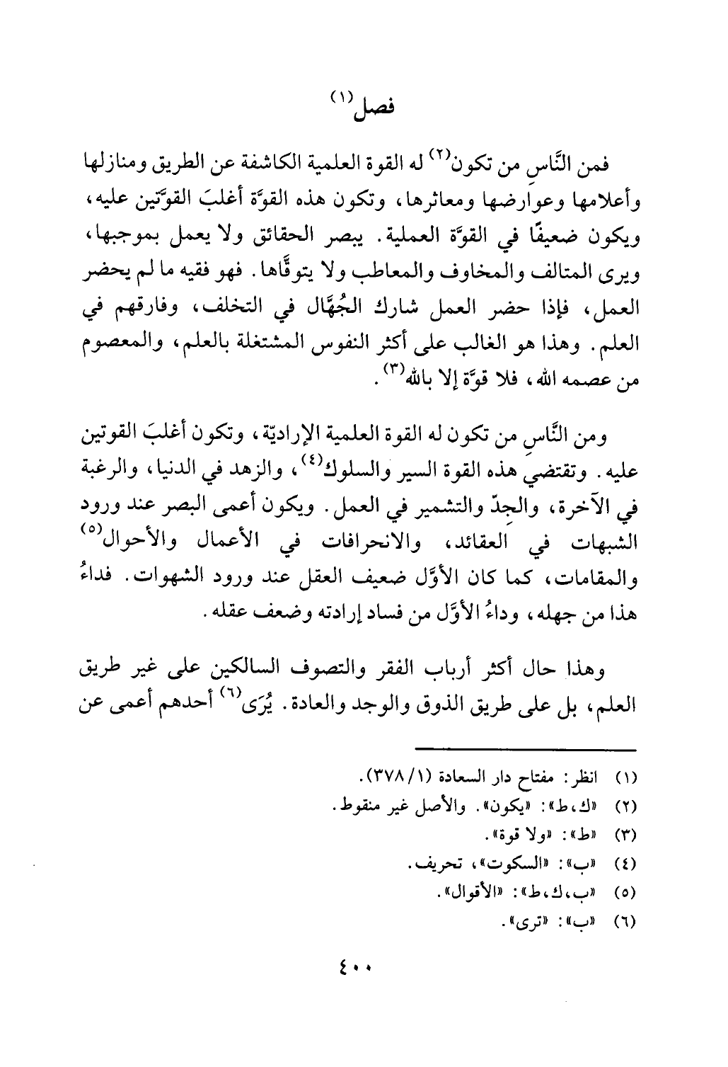 فمن الئاس من تكون (2) له القوة العلمية الكاشفة عن الطريق ومنازلها