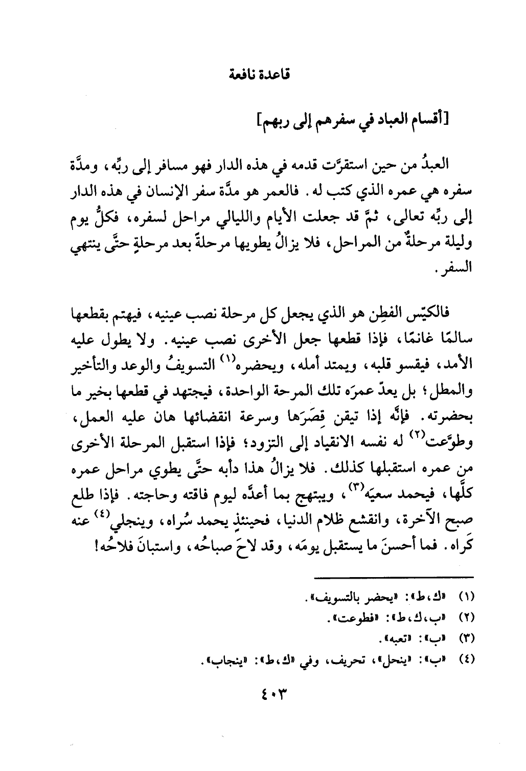 العبد من حين استقرت قدمه في هذه الدار فهو مسافر إلى رئه، ومدة