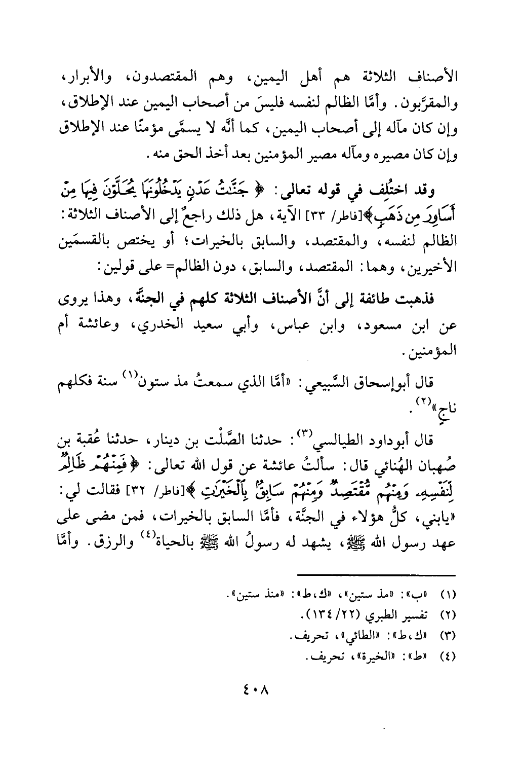 أساور من دت) [فاطر/ 33] الاية، هل ذلك راجع إلى الاصناف الثلاثة: