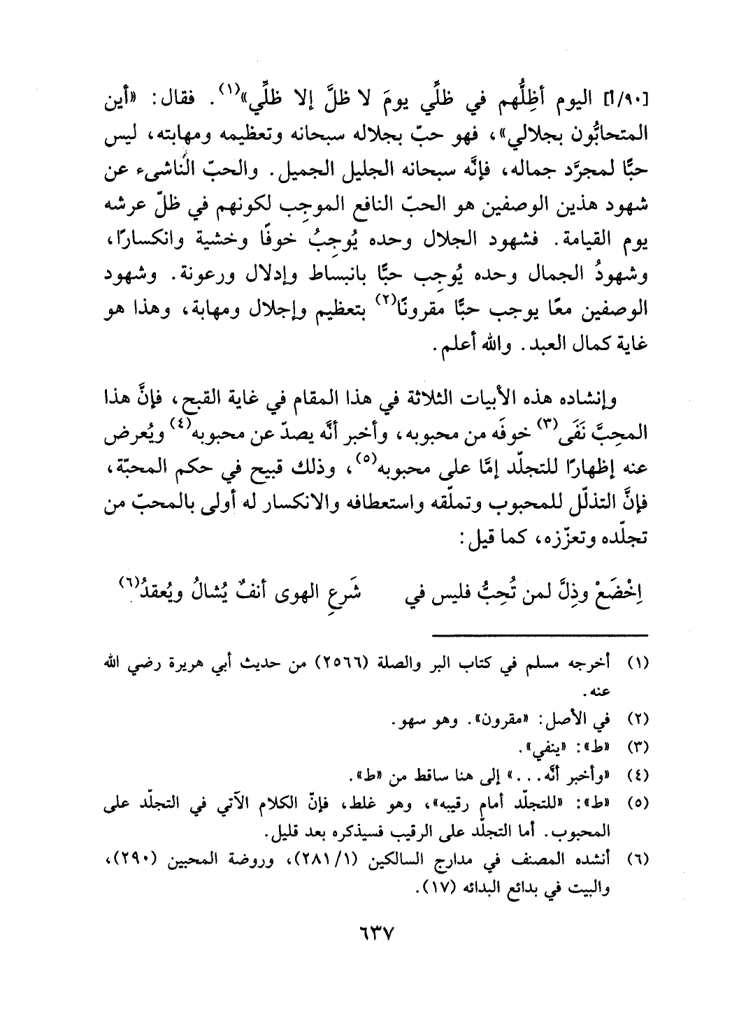 وشهود الجمال وحده يوجب حبا بانبساط وادلال ورعونة. وشهود