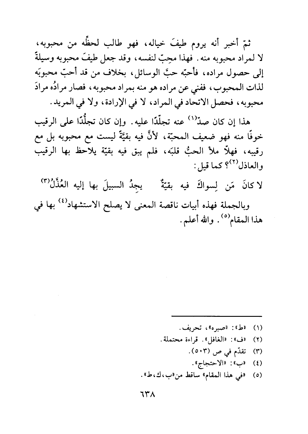 لا لمراد محبوبه منه. فهذا محب لنفسه، وقد جعل طيف محبوبه وسيلة