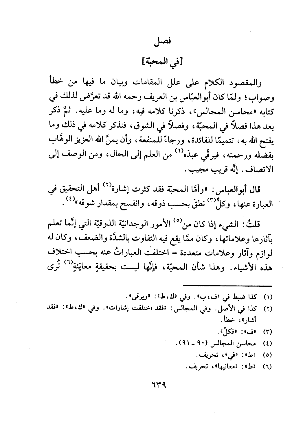 قال أبوالعباس: "و ما المحبة فقد كثرت إشارة (2) أهل التحقيق في