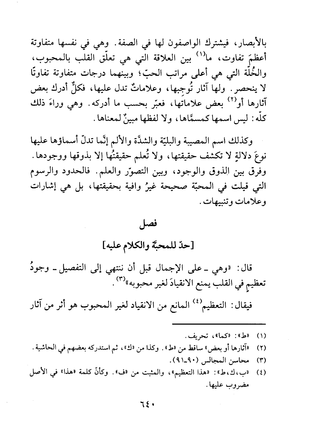 التي قيلت في المحبة صحيحة غير وافية بحقيقتها، بل هي إشارات