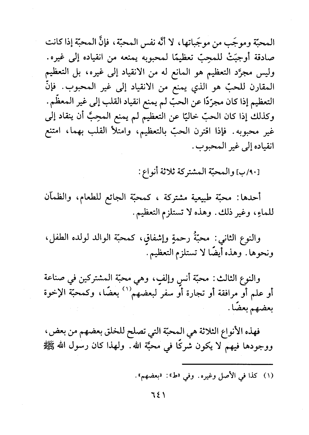 [.9/ب] والمحبة المشتركة ثلاثة أنواع: