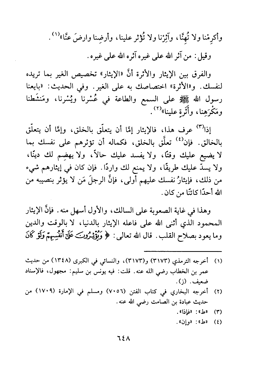 إذا (3) عرف هذا، فالايثار إما أن يتعلق بالخلق، وإفا ن يتعلق