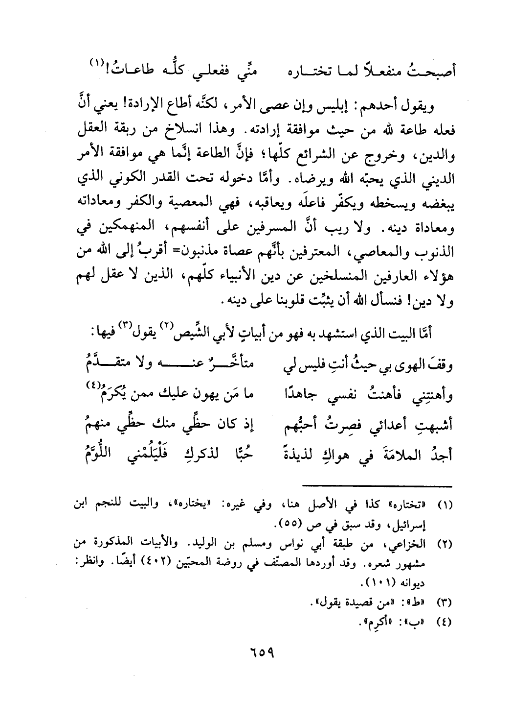 مشهور شعره. وقد أوردها المصتف في روضة المحبين (402) أيضا. و 1 نظر:
