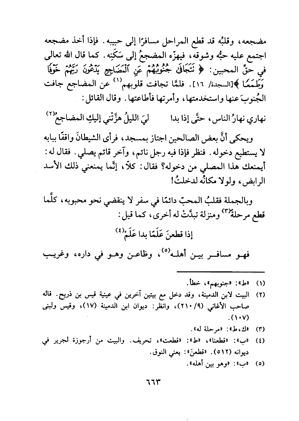 وبالجملة فقلب المحب / دائما في سفر لا ينقضي نحو محبوبه، كلما