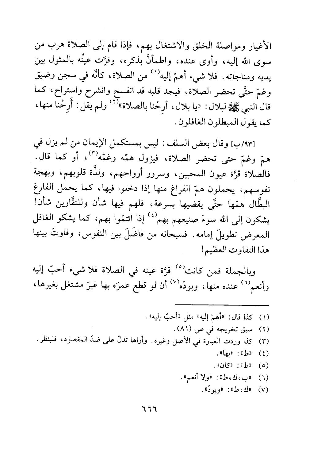 قال النبي ع! يو لبلال: " يا بلال، أرحنا بالصلاة " (2) ولم يقل: أرحنا منها،