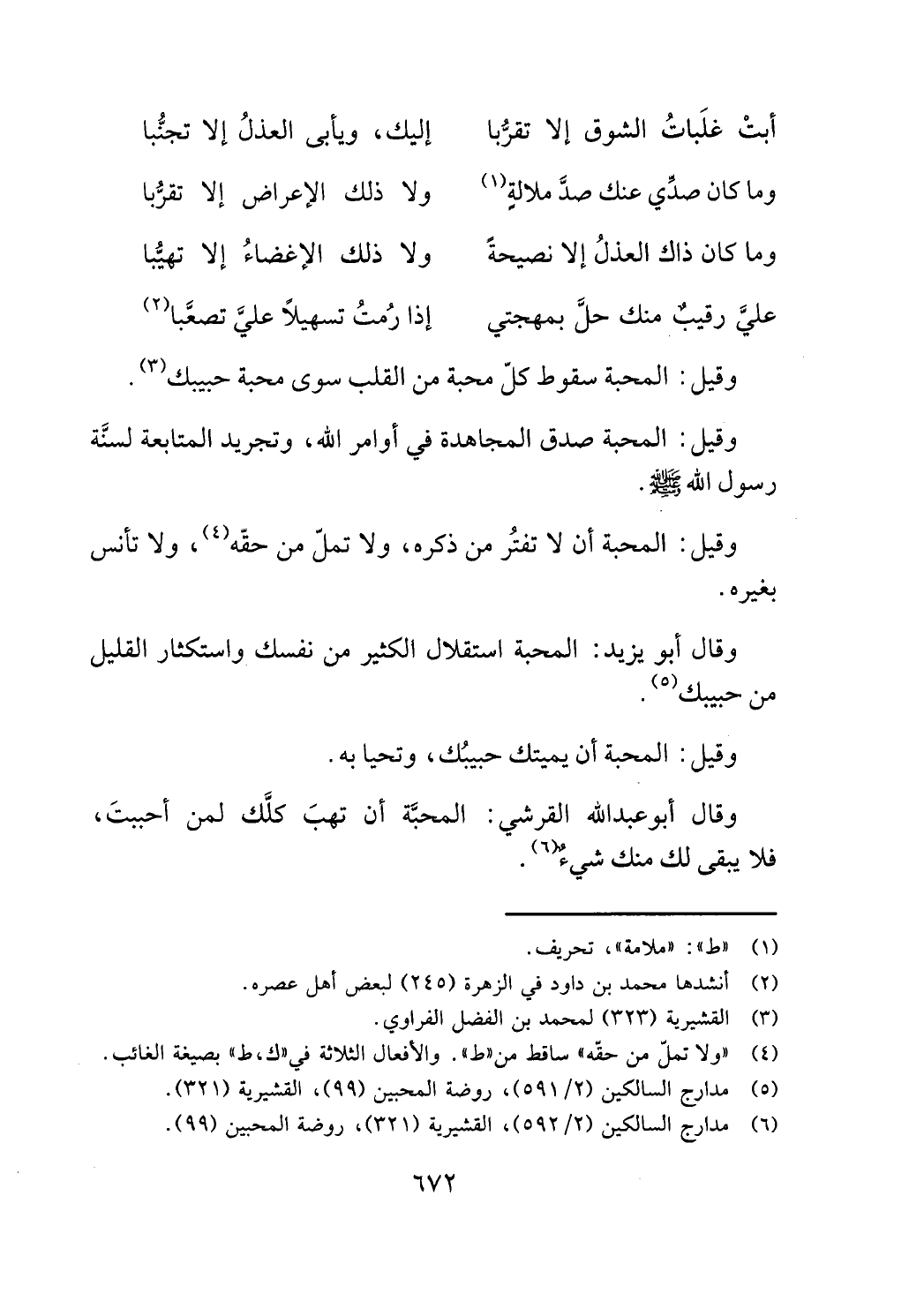مدارج السالكين (2/ 591)، روضة المحبين (99)، القشيرية (321).