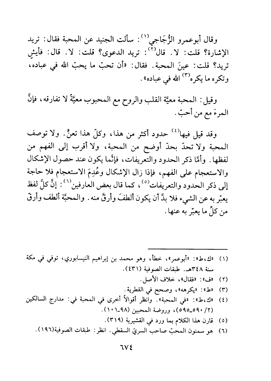 قارن هذا الكلام بما ورد في القشيرية (319).