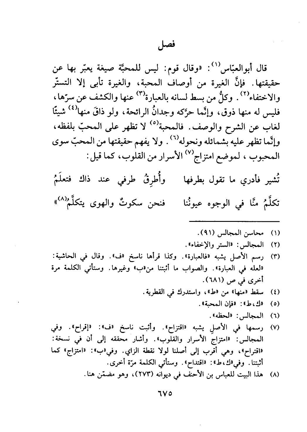 المجالس: "امتزاج الاسرار والقلوب ". وأشار محققه إلى أن في نسخة: