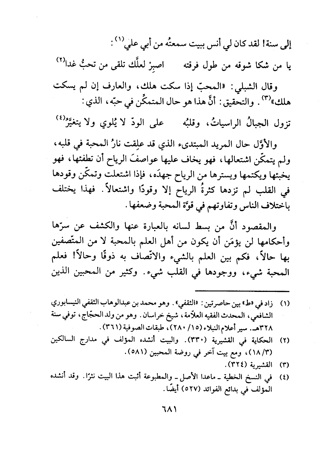 (2) الحكاية في القشيرية (330). والبيت أنشده المؤلف في مدارج السالكين