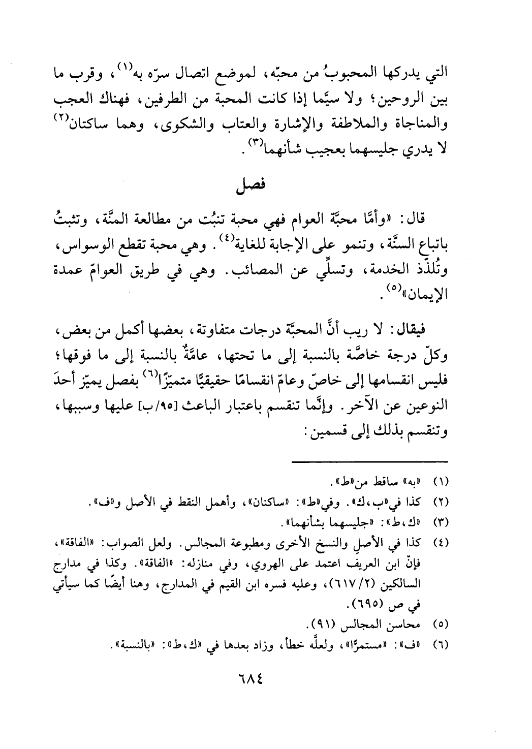 قال: "وأما محبه العوام فهي محبة تنبت من مطالعة المنة، وتثبت