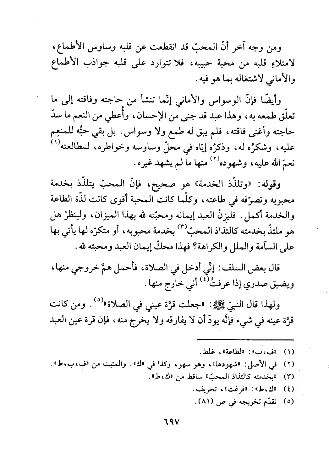 ومن وجه اخر أن المحب قد انقطعت عن قلبه وساوس الاطماع،
