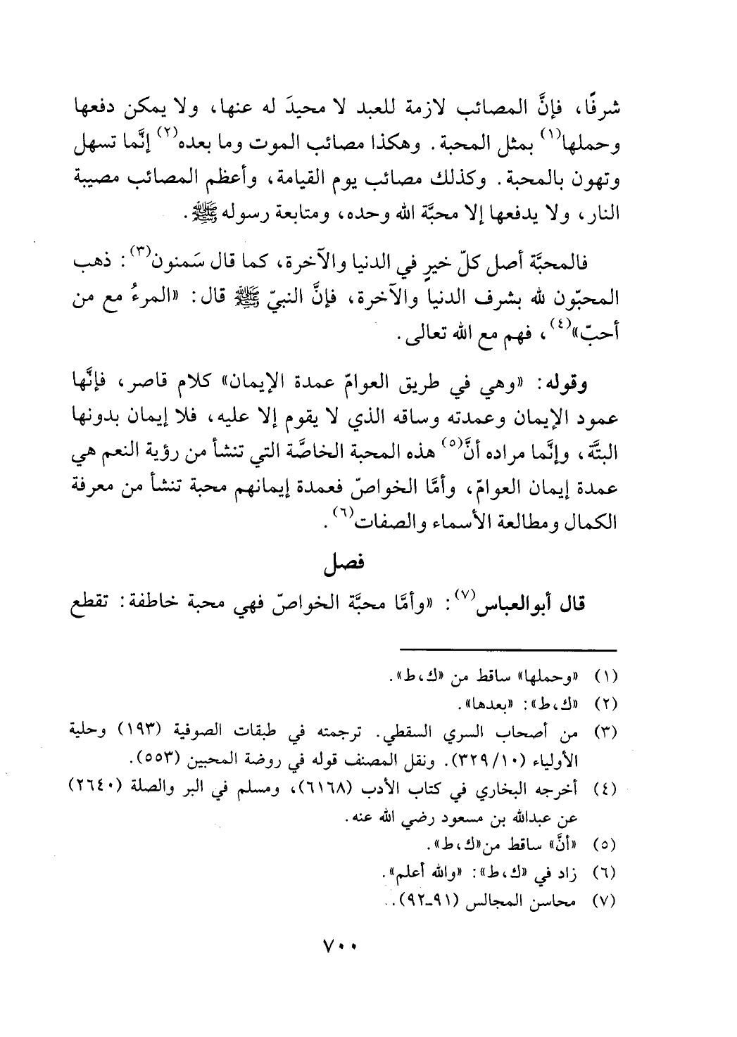 قال ابوالعباس (7): "وأما محبة الخواص فهي محبة خاطفة: تقطع