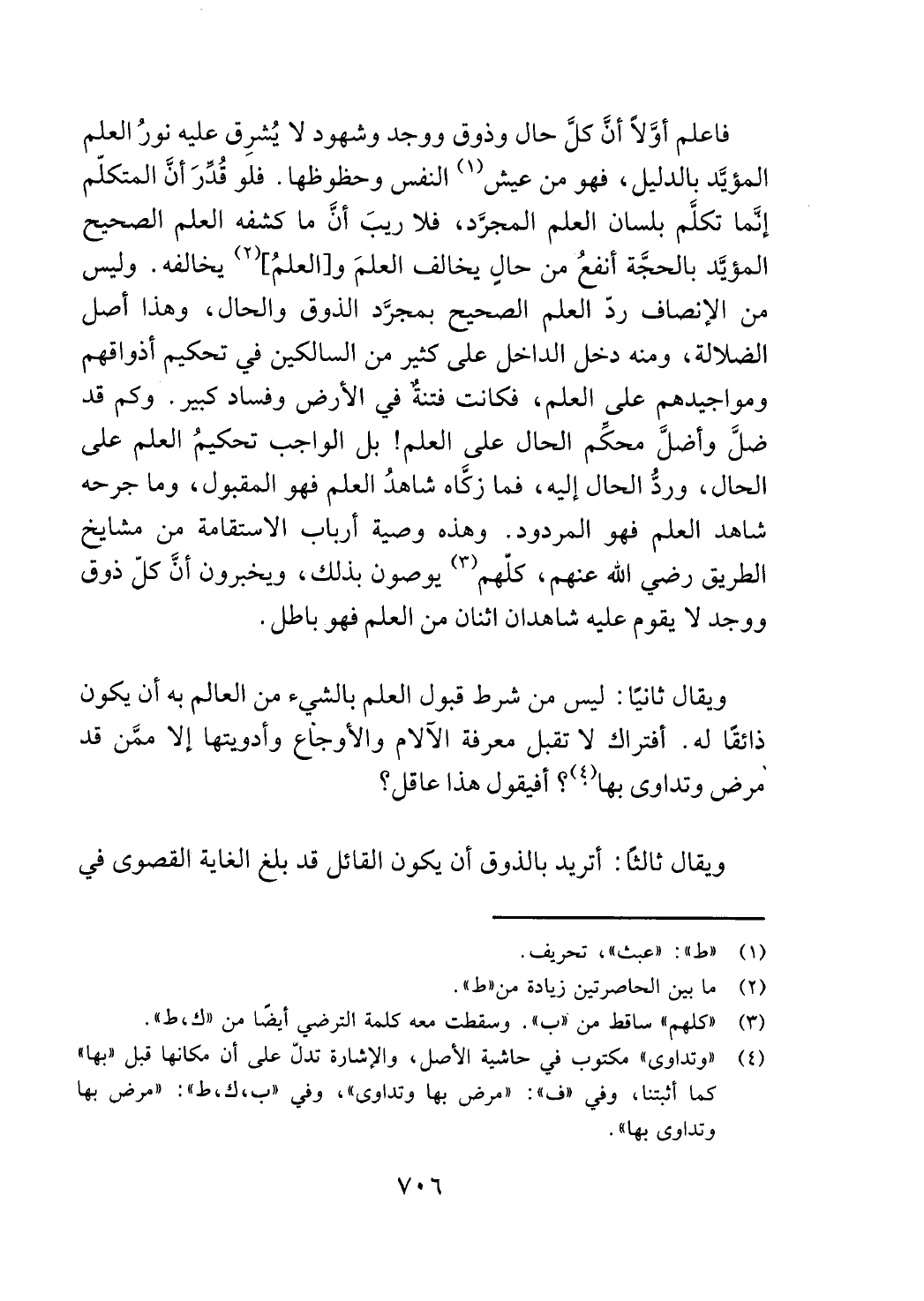 فاعلم أولا ن كل حال وذوق ووجد وشهود لا يشرق عليه نور العلم