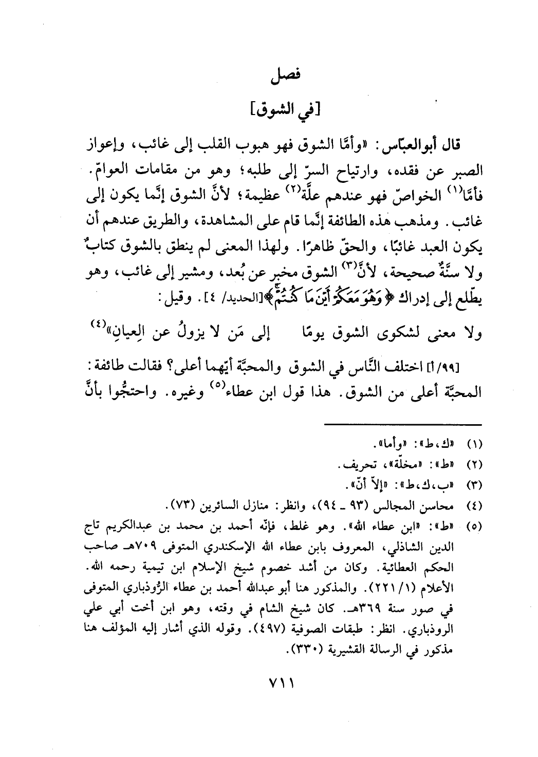 991/ا] اختلف الناس في الشوق والمحبه أيهما أعلى؟ فقالت طائفة: