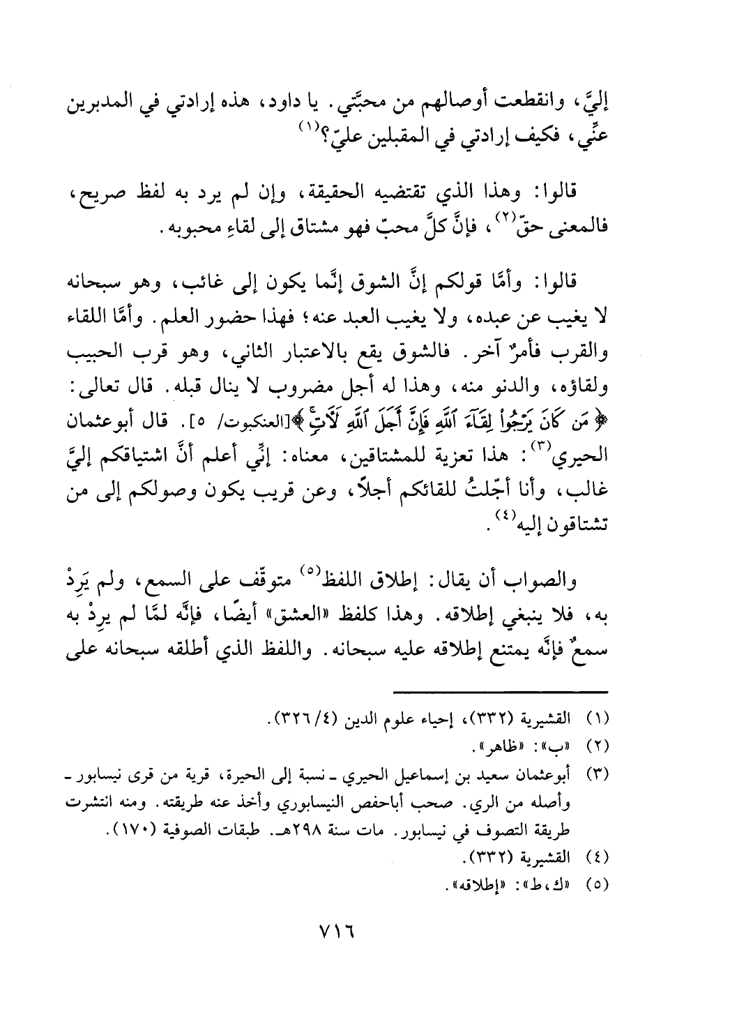 القشيرية (332)، إحياء علوم الدين (4/ 326).