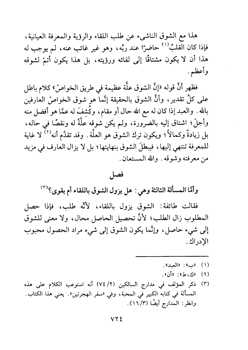 المسألة في كتابه الكبير في المحبة، وفي "سفر الهجرتين ". يعني هذا الكتاب.