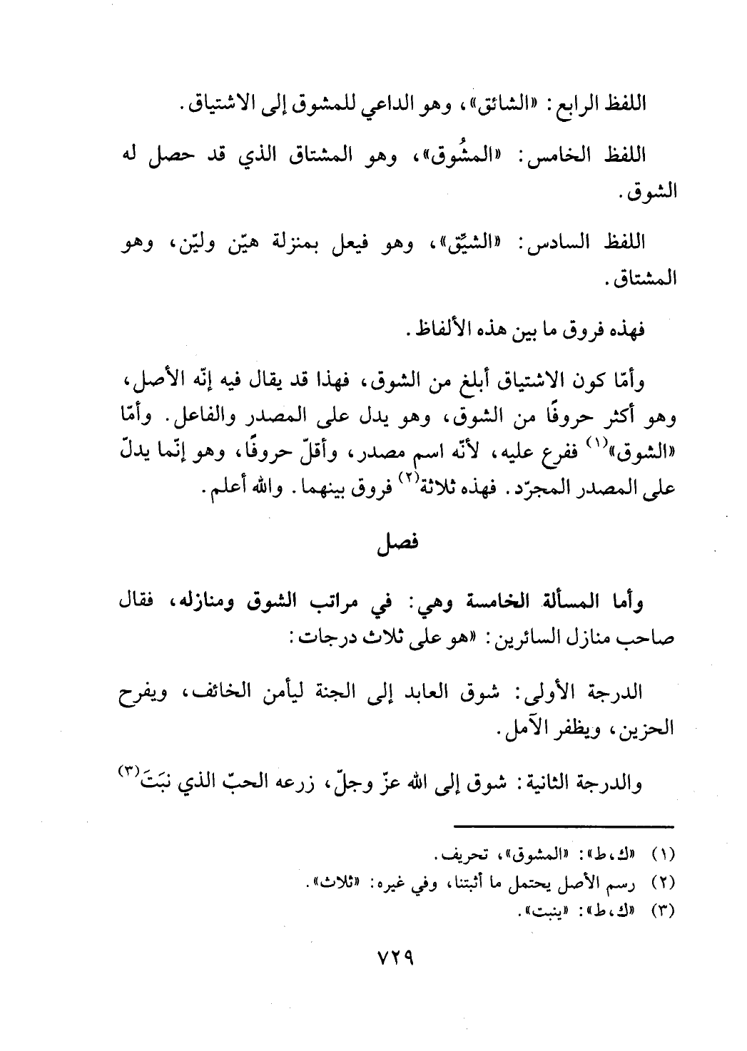 واما المسألة] لخامسة وهي: في مراتب الشوق ومنازله، فقال