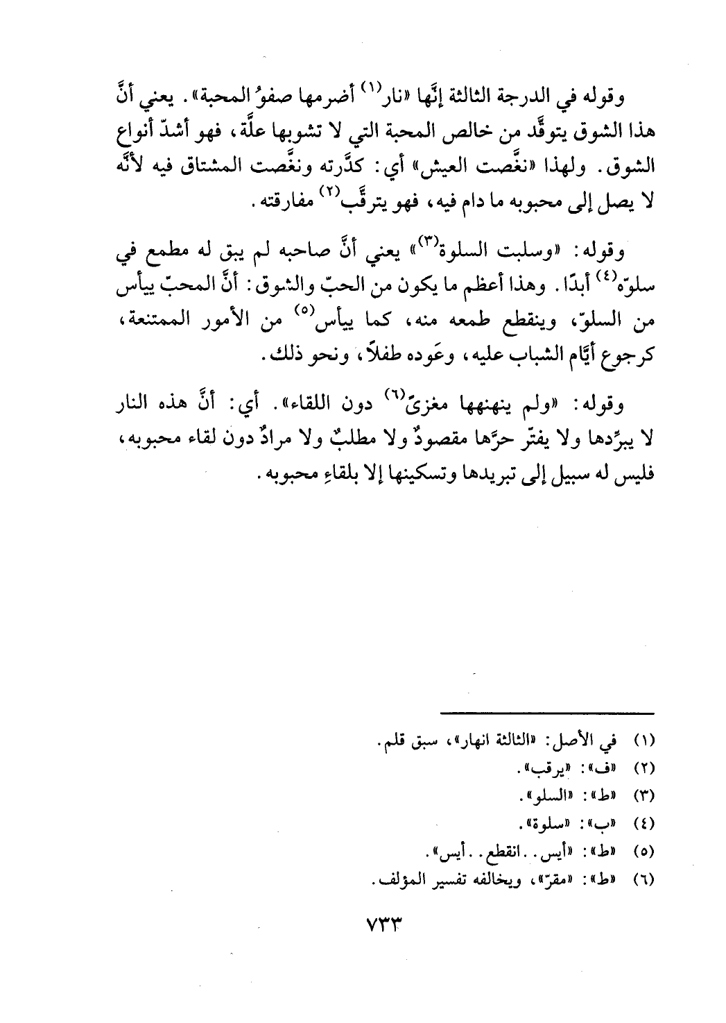 وقوله في الدرجة الثالثة إلها " نار (1) أضرمها صفو المحبة ". يعني أ ن