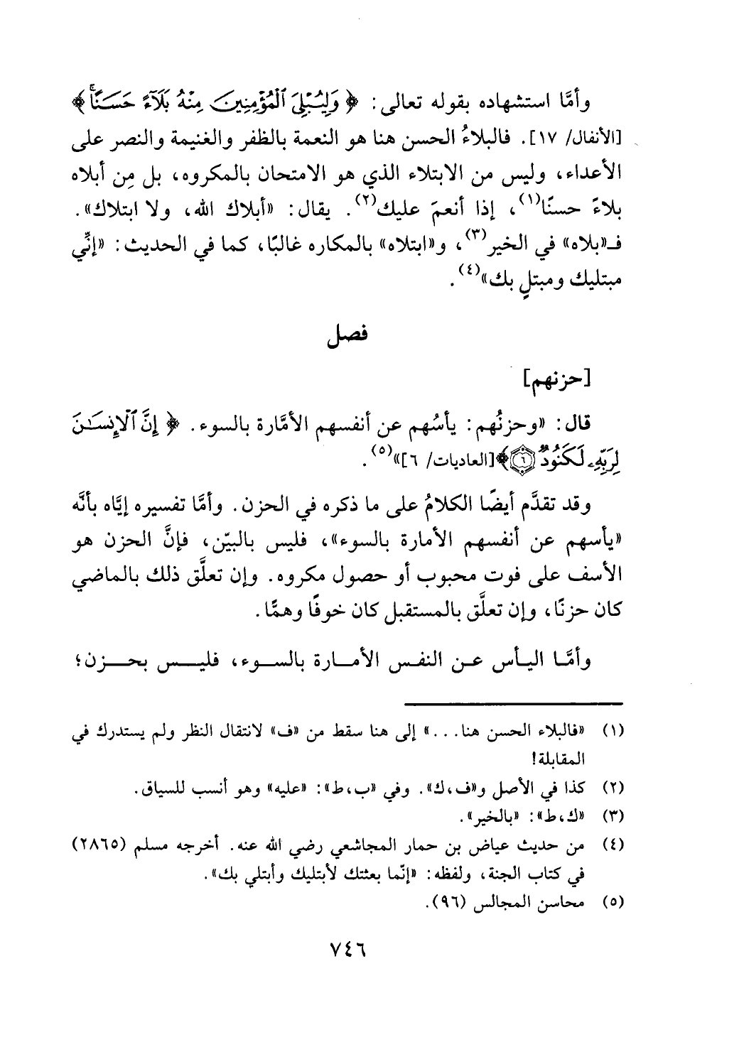 "فالبلاء الحسن هنا. . ." إلى هنا سقط من "ف" لانتقال النظر ولم يستدرك في