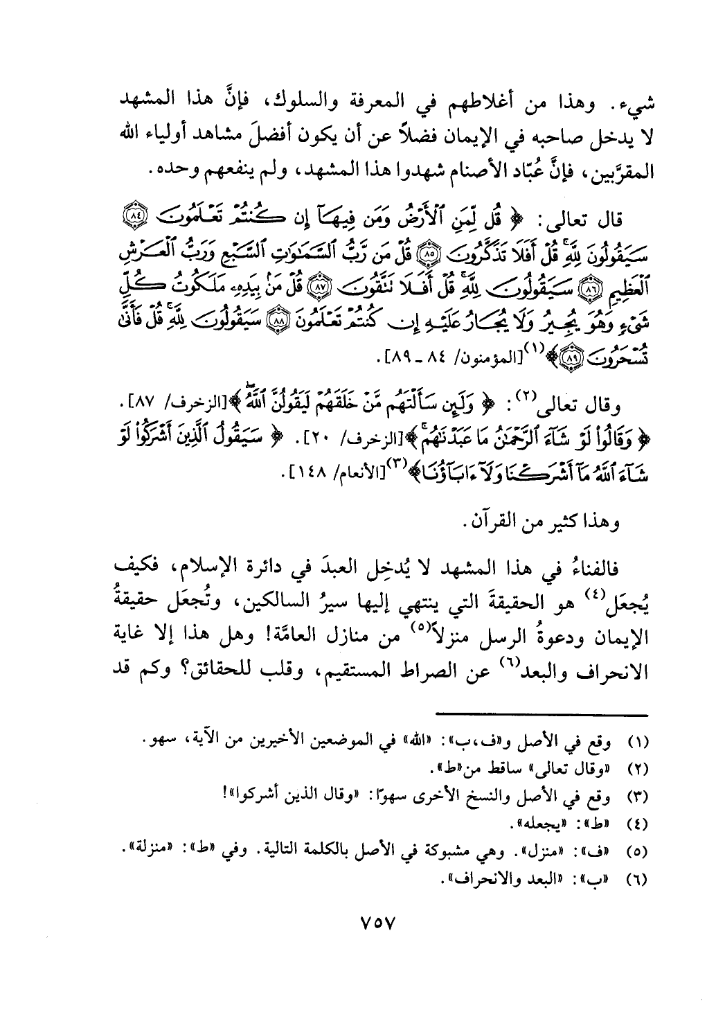 فالفناء في هذا المشهد لا يدخل العبد في دائرة الاسلام، فكيف
