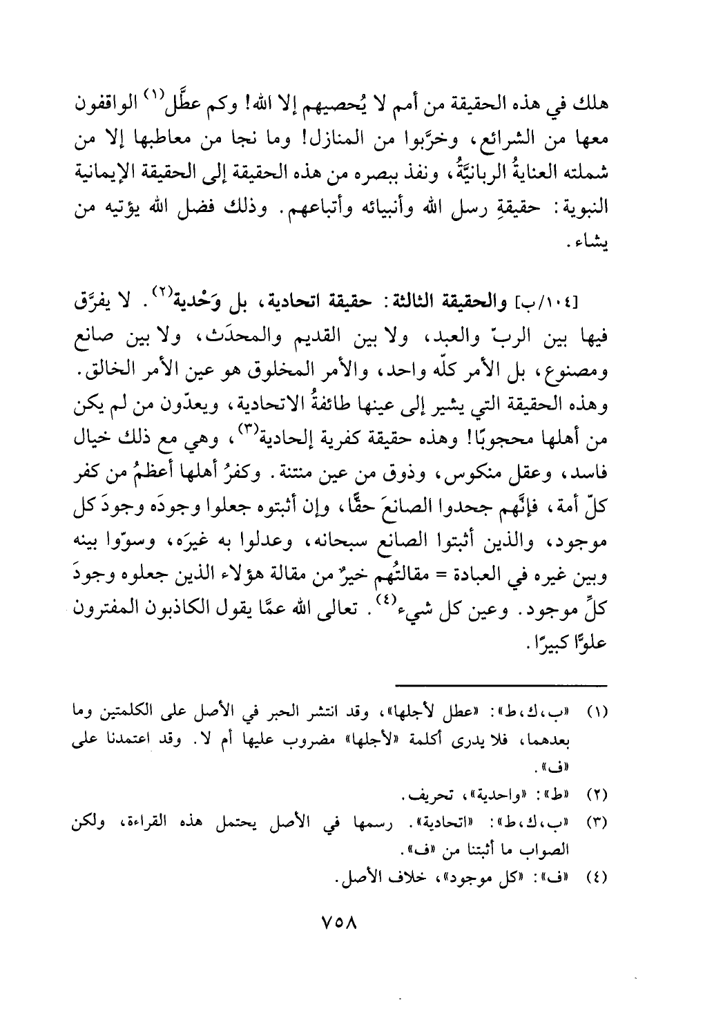 [104/ب] والحقيقة الثالثة: حقيقة اتحادية، بل وحدية (2). لا يفرق