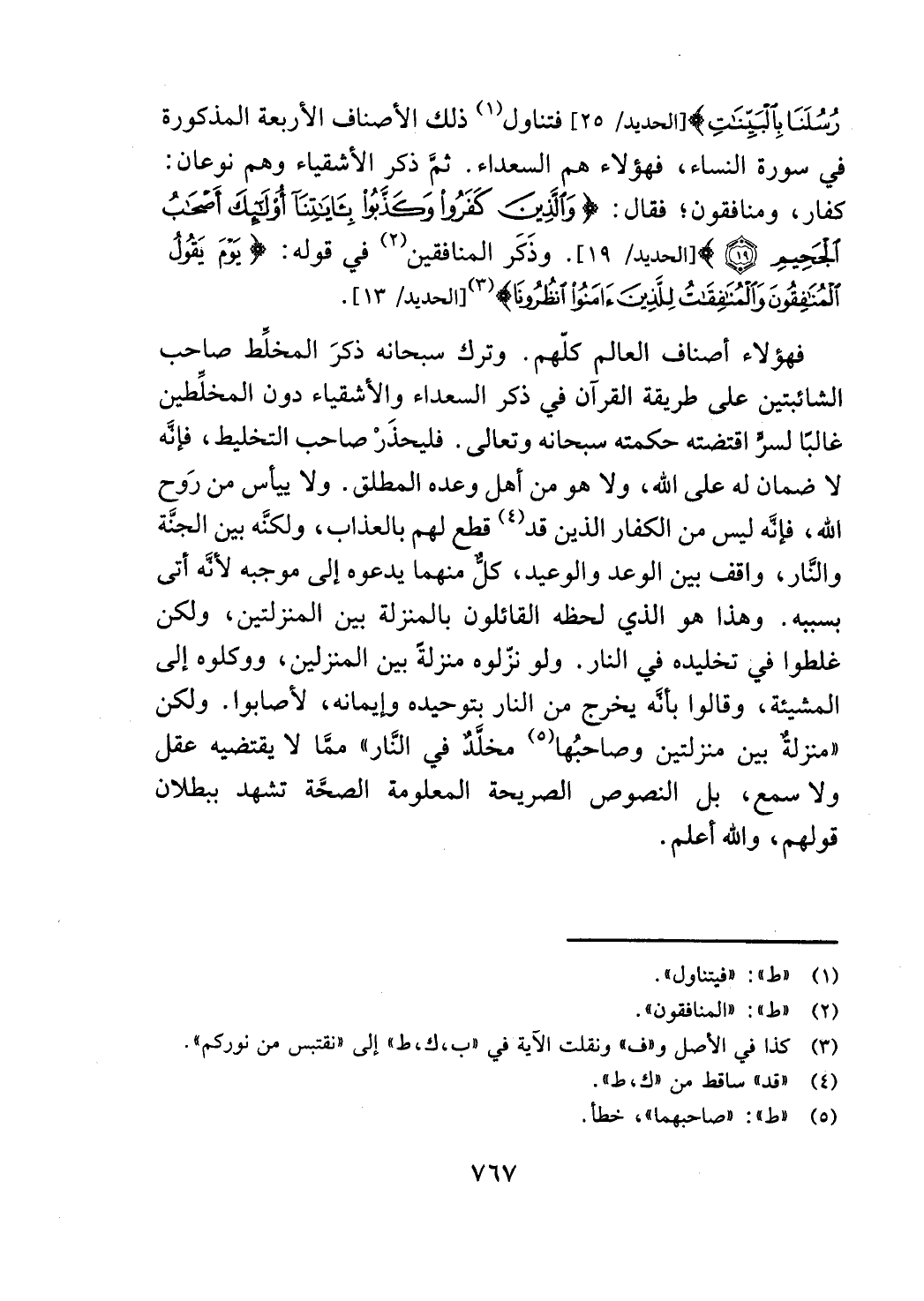 الشائبتين على طريقة القرآن في ذكر السعداء والاشقياء دون المخلطين