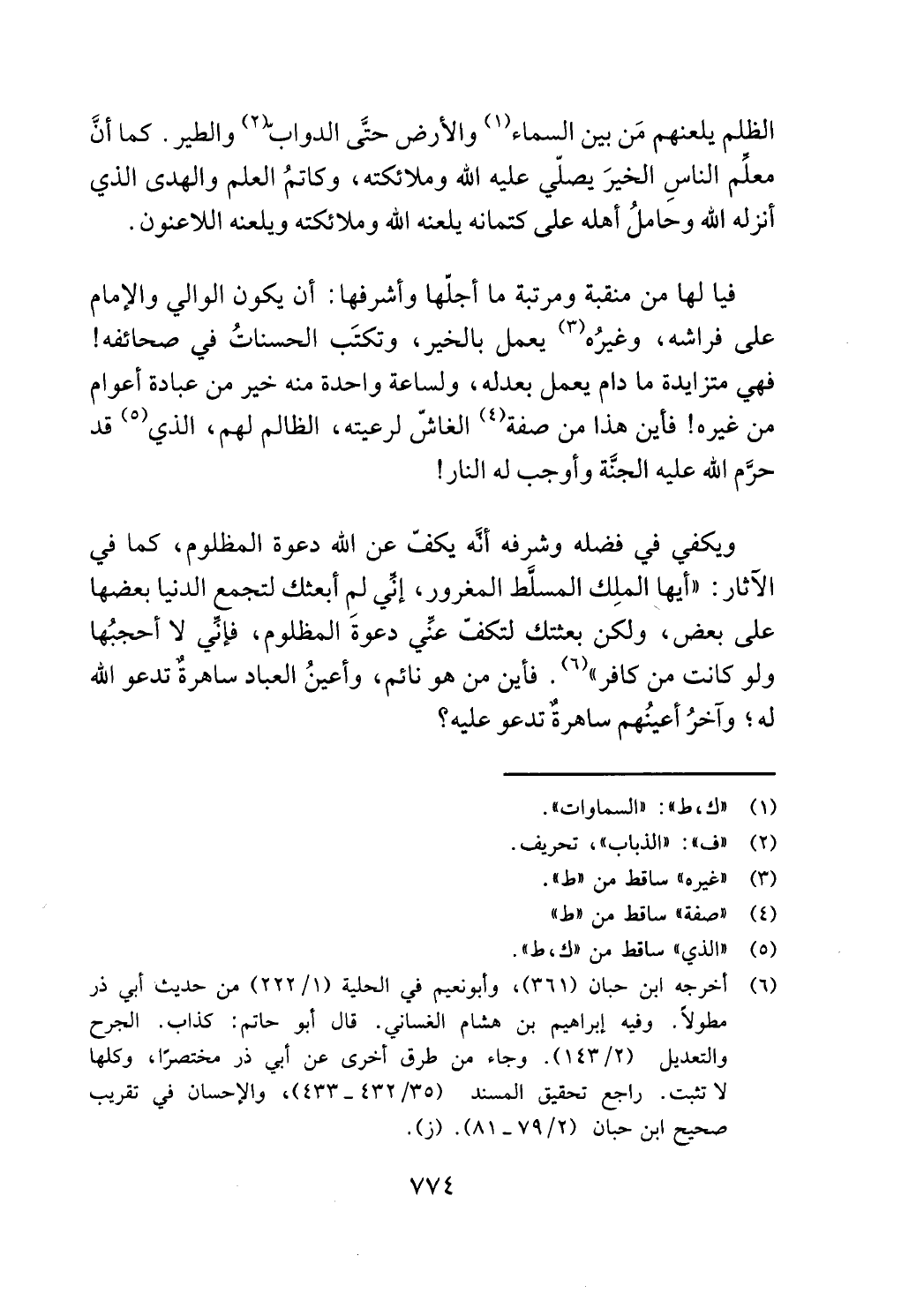 الظلم يلعنهم من بين السماء (1) والارض حتى الدو بط 2) والطير. كما ن
