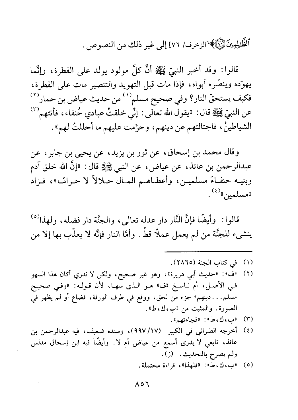 عن النبي غ! ير قال: "يقول الله تعالى: إني حلقت عبادي حنفاء، فاتتهم (3)