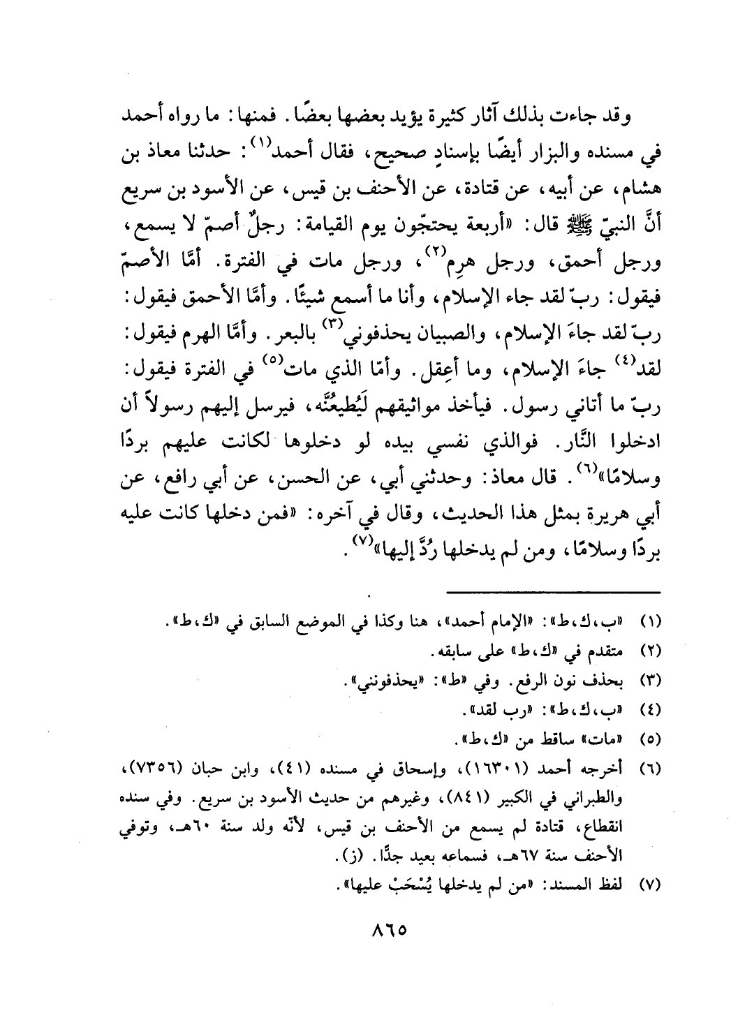 هشام، عن أبيه، عن قتادة، عن الاحنف بن قيس، عن الاسود بن سريع