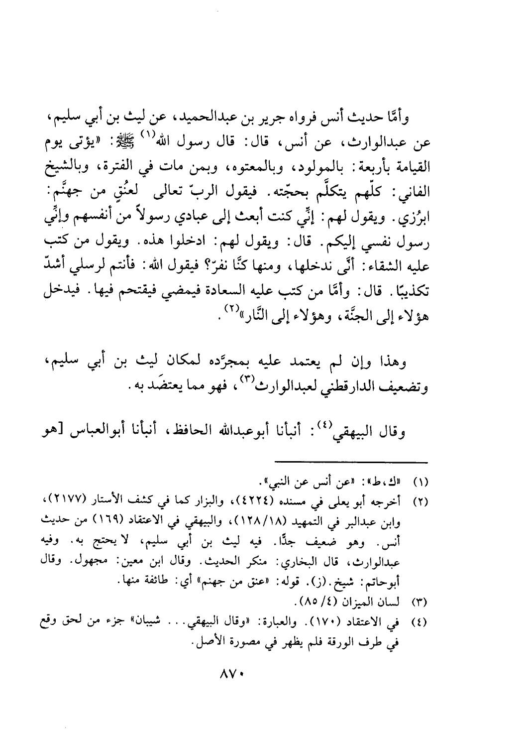 في الاعتقاد (170). والعبارة: "وقال البيهقي. . . شيبان " جزء من لحق وقع