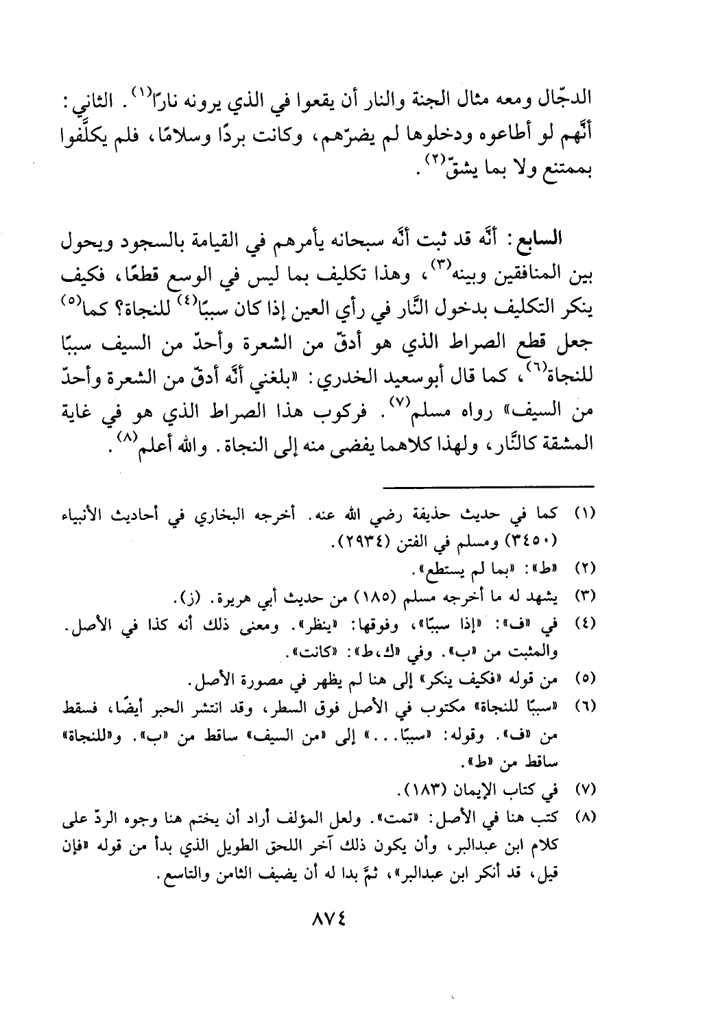 قيل، قد أنكر بن عبدالبر"، ثئم بدا له ان يضيف الثامن والتاسع.