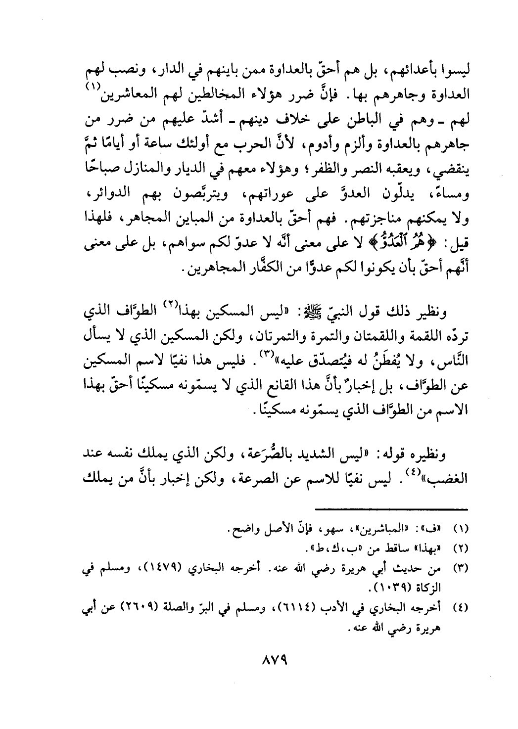 ونظير ذلك قول النبيئ! يم: "ليس المسكين بهذا (2) الطواف الذي