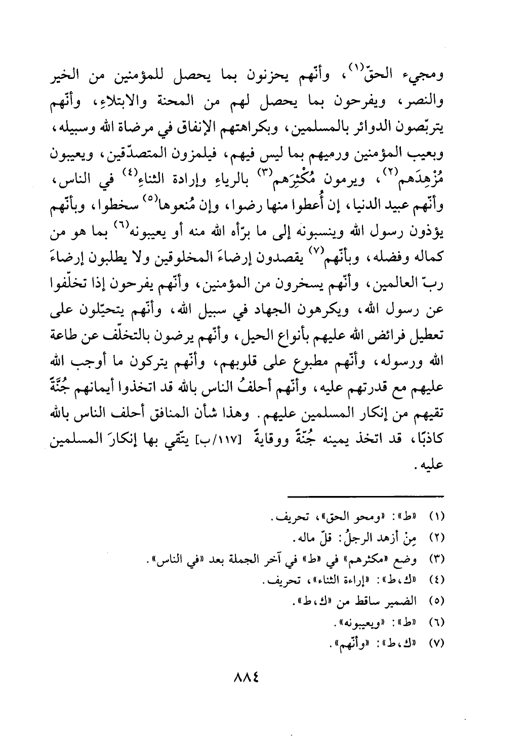 كماله وفضله، وبأنهم (7) يقصدون إرضاء المخلوقين ولا يطلبون إرضاء