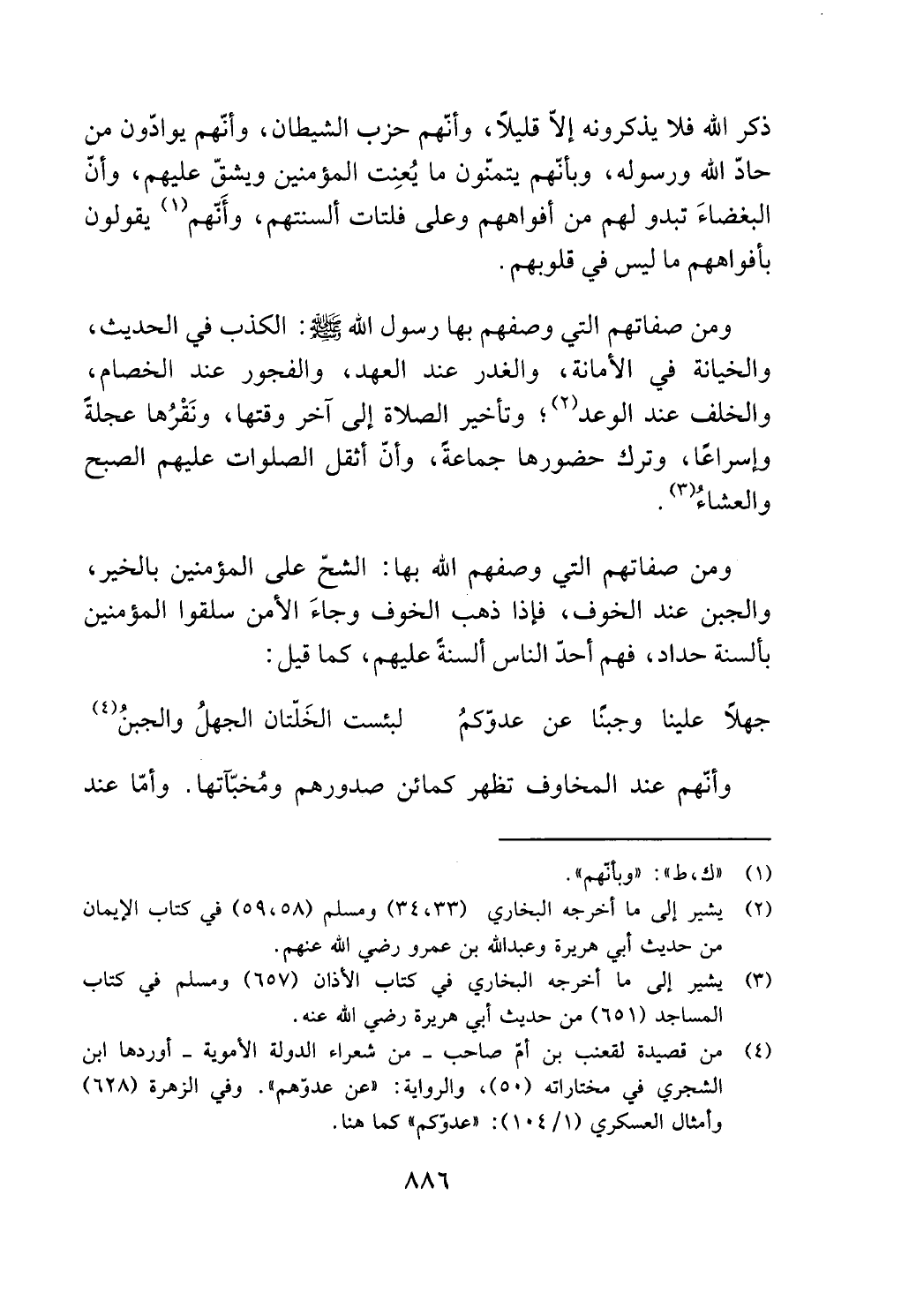 ذكر الله فلا يذكرونه إلا قليلا، و نهم حزب الشيطان، و نهم يوادون من