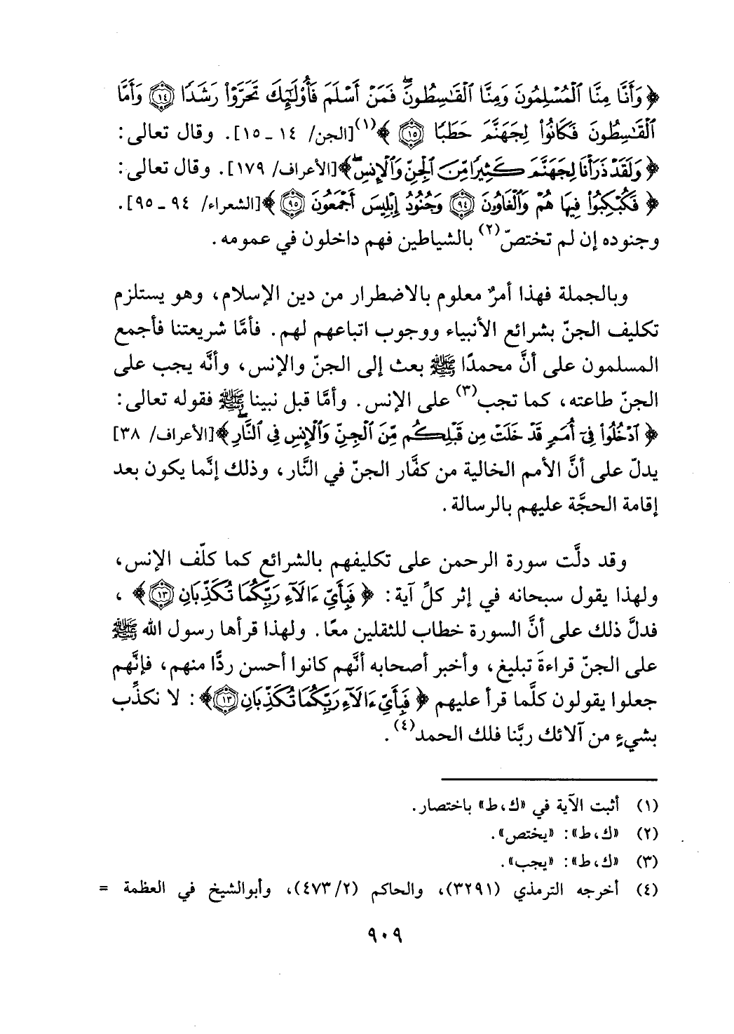 وقد دلت سورة الرحمن على تكليفهم بالشرائع كما كلف الانس،